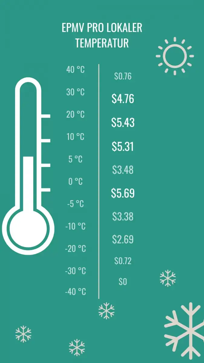 - Zwischen 5 und 10 °C: Einnahmen von 48,72 $ oder 15,5 % der Gesamtsumme, mit höherem EPMV