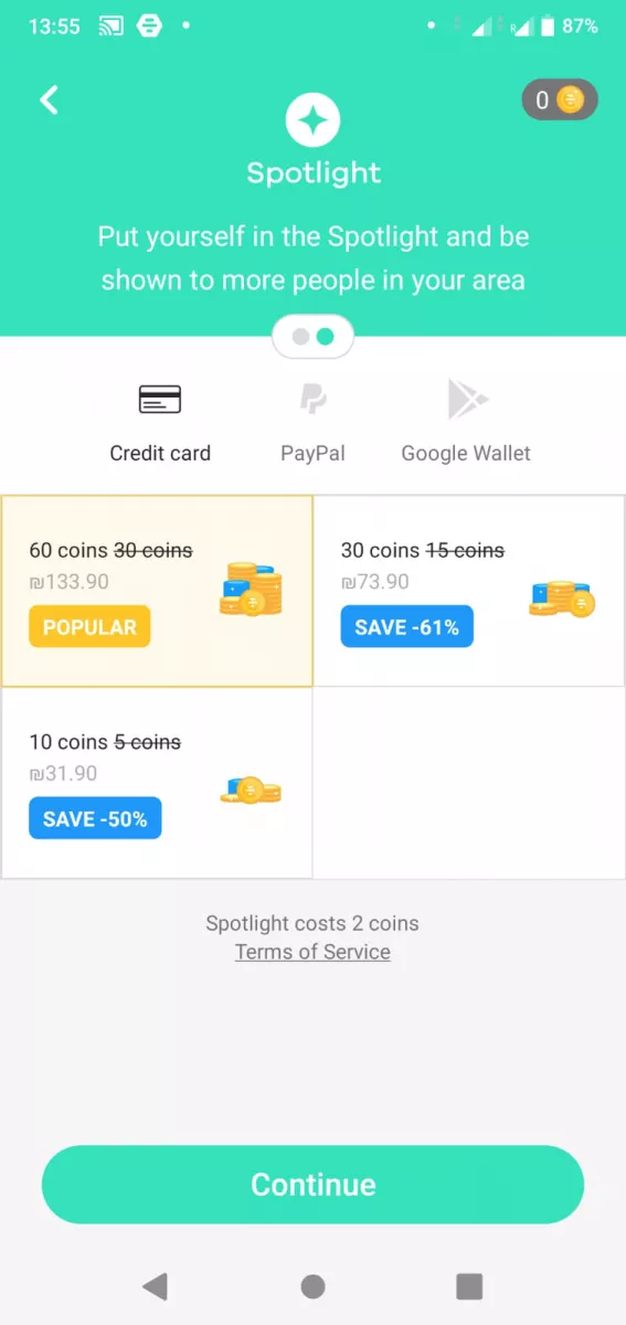 Each spotlight lasts for a few hours and costs 2 coins, and you can buy 10 coins for US$10, or 60 coins for US$40.